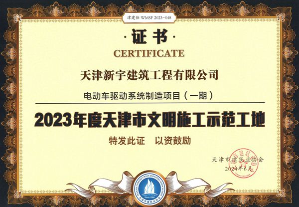 电动车驱动系统制造项目(一期)荣获2023年度市文明施工示范工地称号