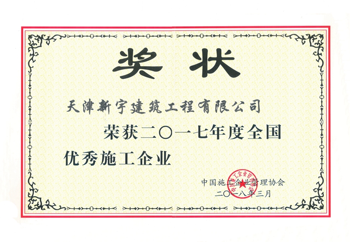 荣获2017年度全国优秀施工企业