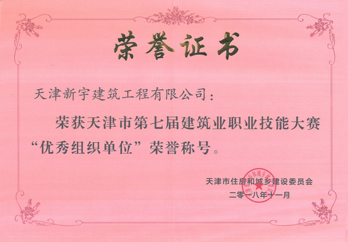 荣获天津市第七届建筑业职业技能大赛“优秀组织单位”荣誉称号
