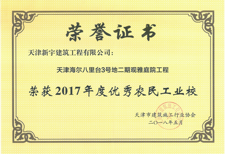 观雅庭院米兰网站_米兰(中国)官方荣获2017年度“优秀农民工业校”荣誉称号