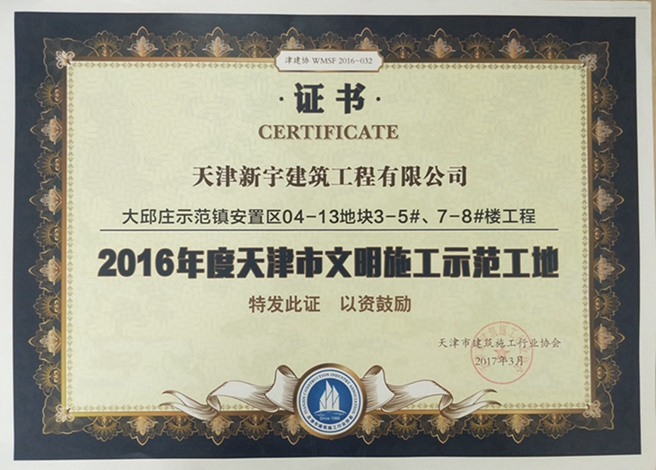 大邱庄示范镇安置区3-5#、7-8#楼米兰网站_米兰(中国)官方被评为2016年度天津市文明施工示范工地
