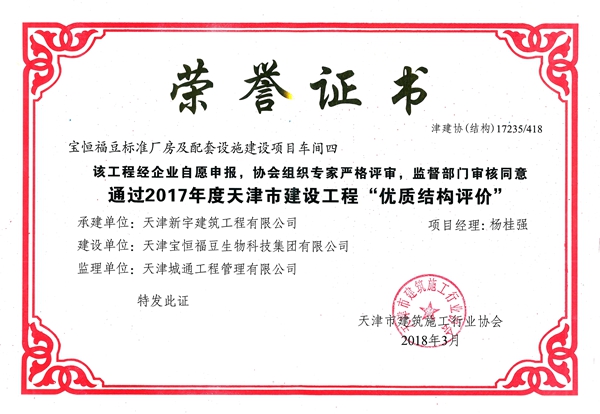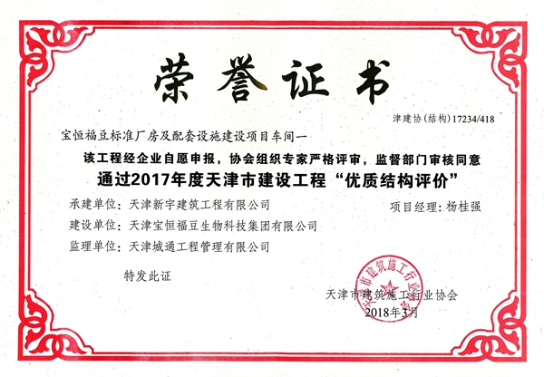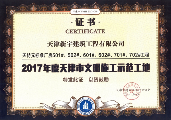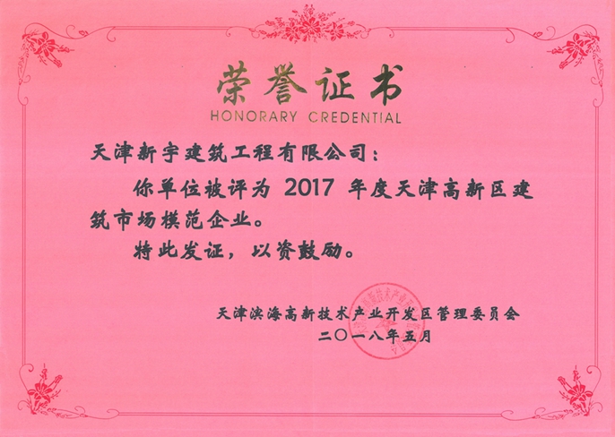 我公司被评为“2017年度天津高新区建筑市场模范企业”