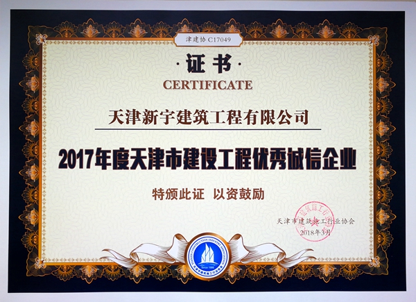 2017年度天津市建设米兰网站_米兰(中国)官方优秀诚信企业